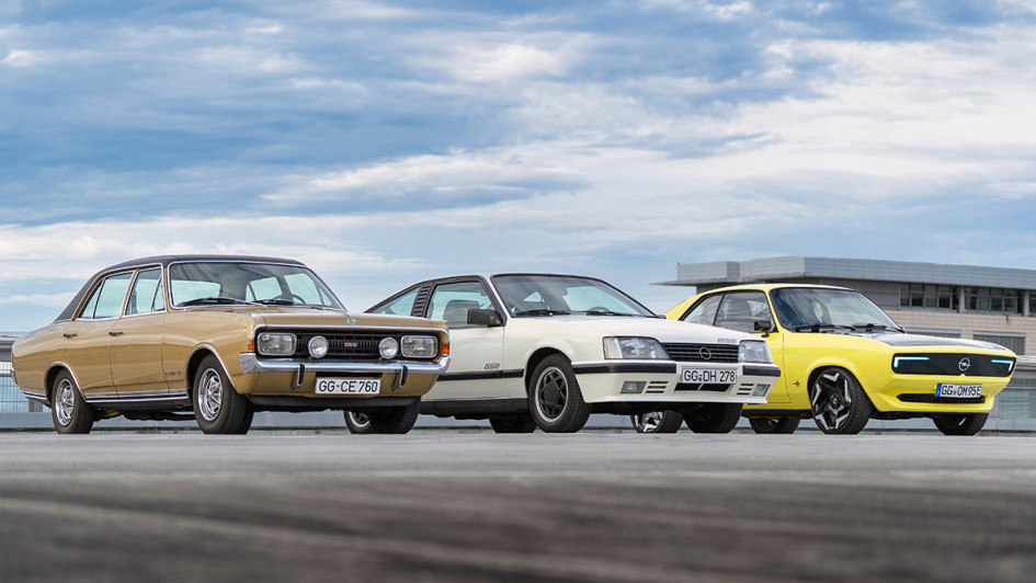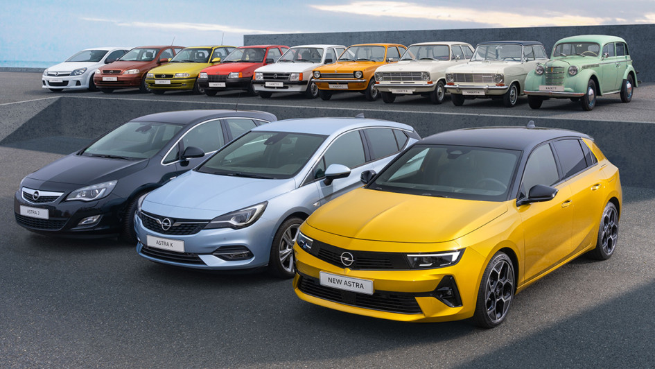 von 14: Opel kann auf eine lange Tradition im Pkw-Bau zurückblicken. Von links: Patent Motorwagen Lutzmann, Opel 4-20 PS von 1929, Opel Kapitän 1938, Opel GT 1968, Opel Omega 1998 und Opel Astra 2019.