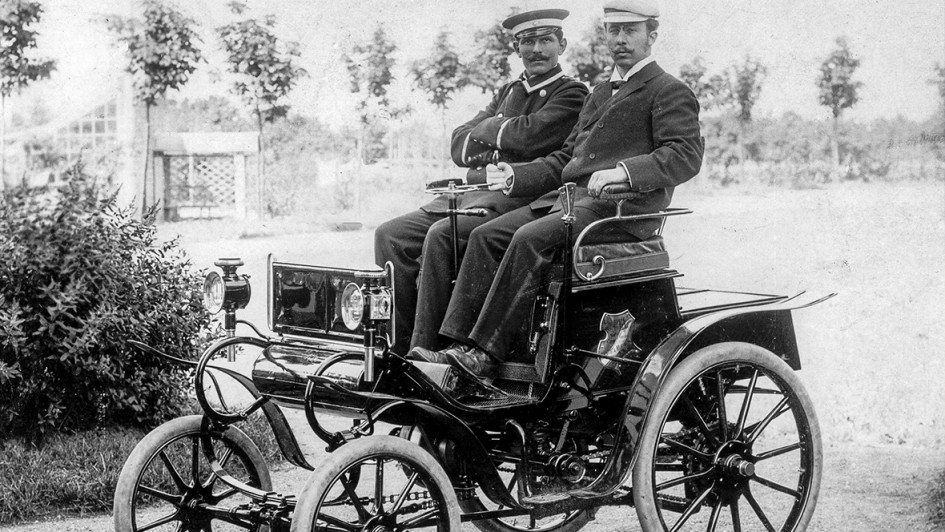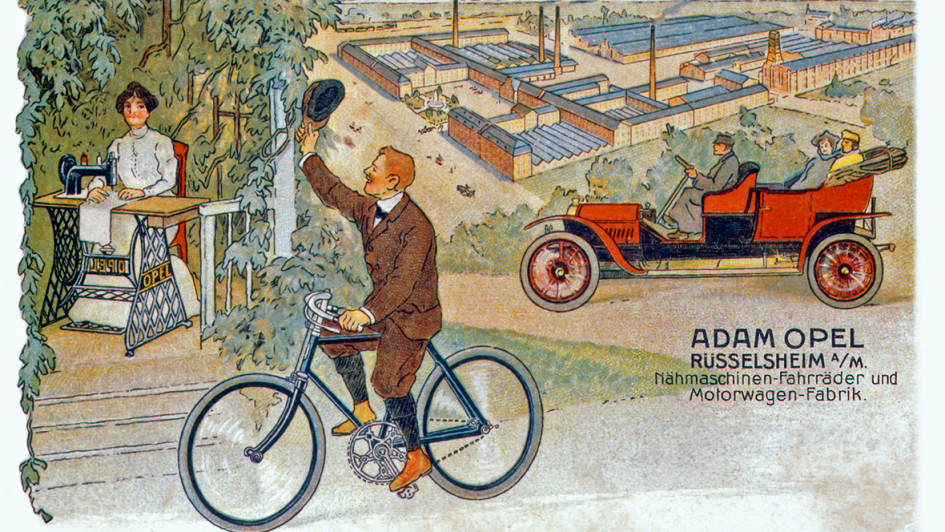 von 14: Opels erstes Modell, der "Opel Patent-Motorwagen System Lutzmann", wurde von einem Einzylinder-Heckmotor mit 4 PS Leistung angetrieben, die Höchstgeschwindigkeit betrug 20 km/h.