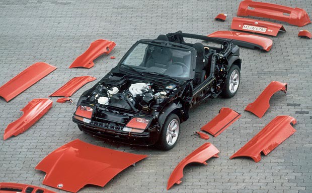 von 5: Der BMW Z1 war und ist das weltweit erste und einzige Auto mit Karosserieteilen aus Polyurethan, die mit einem Chassis aus feuerverzinktem Stahl verschraubt sind.