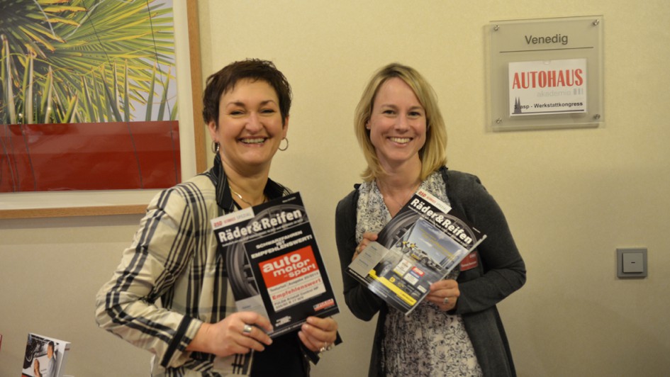 von 16: Um die reibungslose Organsisation des 3. asp Werkstatt-Kongresses und die charmante Betreuung der Teilnehmer kümmerten sich Manuela Vogl und Tamara Swiniarek (r.) vom Team der Autohaus Akademie.