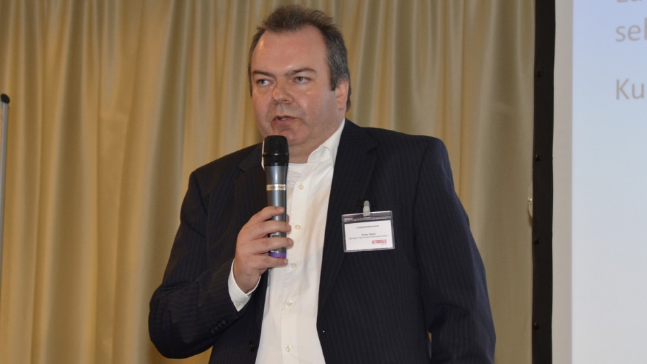 von 16: Richard Campbell von TRW sprach über cloudbasierte Systeme zur Verbesserung des Service und stellte das mit Hans Hess Autoteile realisierte System Konnekt vor.