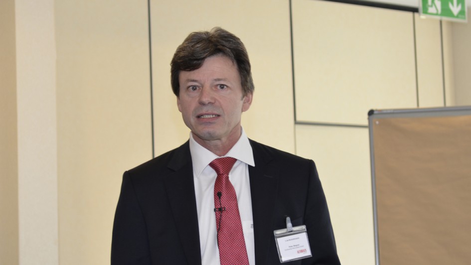 von 16: Peter Wagner, Geschäftsführer der Continental Aftermarket GmbH, stellte dar, wie e-Call, b-Call, Telematik und Intelligente Transport-Steuerung (ITS) zukünftig vernetzt arbeiten.