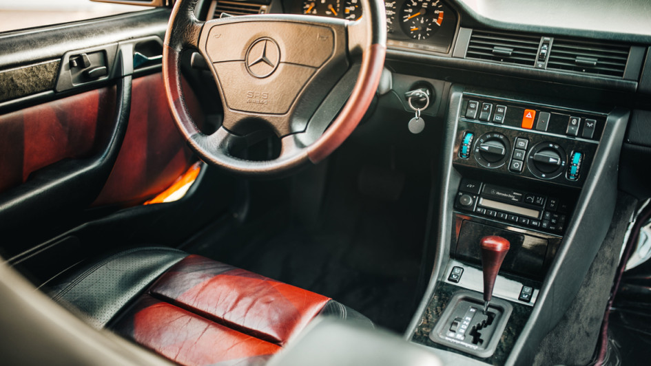 von 9: Im Jahr 1993 avancierte die Sportlimousine als E 500 - so wie die gesamte, nun fast zehn Jahre alte W124-Reihe - mit Plakettengrill und anderen Modifikationen zur ersten, offiziell E-Klasse genannten Mercedes-Reihe.