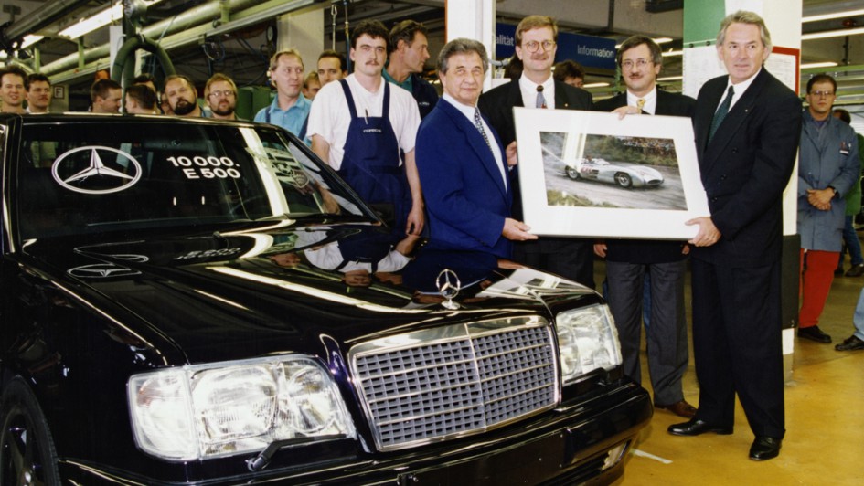 von 9: 1994 hielt der in Affalterbach geschliffene Hochkaräter E 60 AMG Einzug in die Mercedes-Schauräume. Mit 280 kW/381 PS aus dem auf 6,0 Liter vergrößerten V8 war dieser Viertürer ein frühes Ergebnis der seit 1990 bestehenden Kooperation zwischen Mercedes und AMG und er legte die Basis für einen bis heute bestehenden AMG-Powerzeig in der E-Klasse.