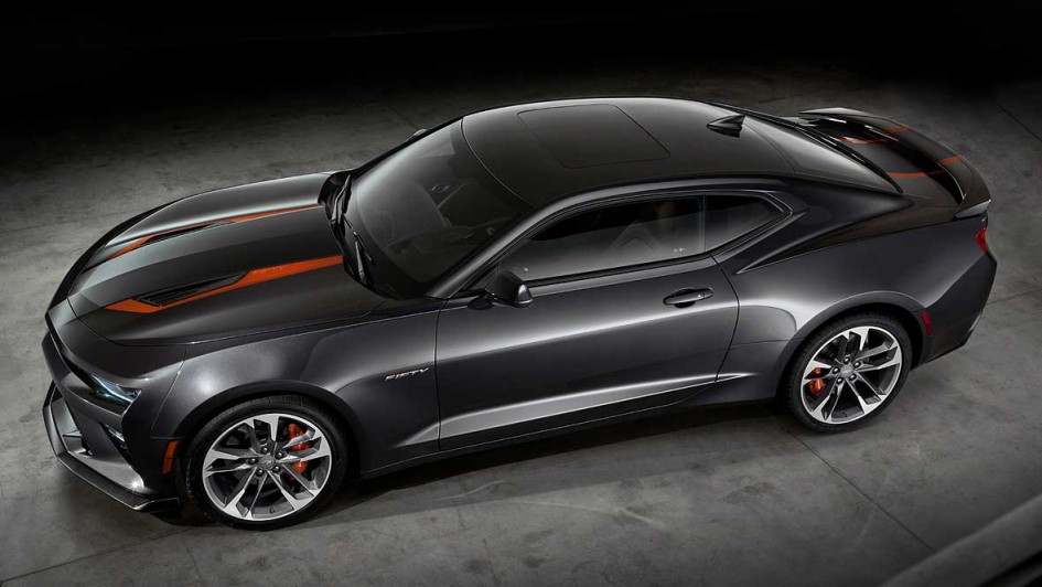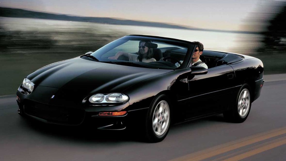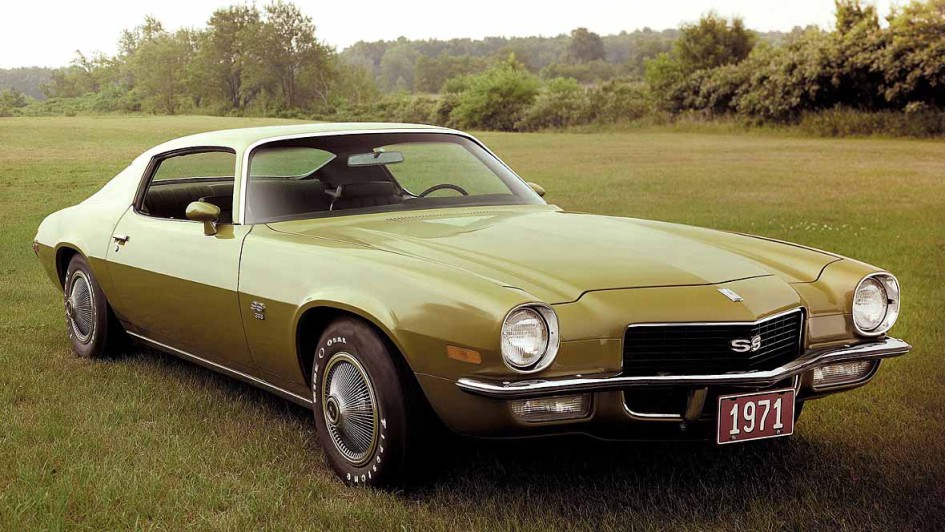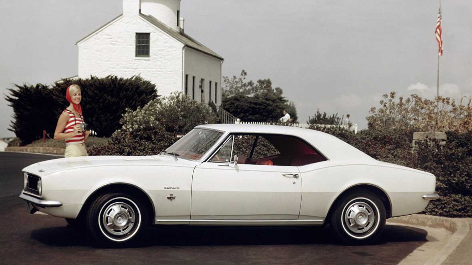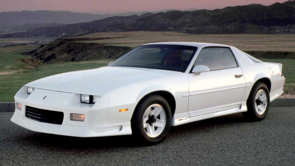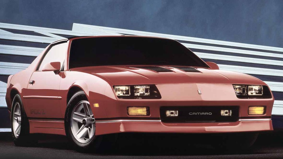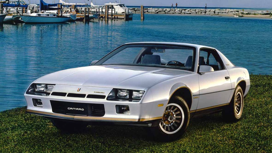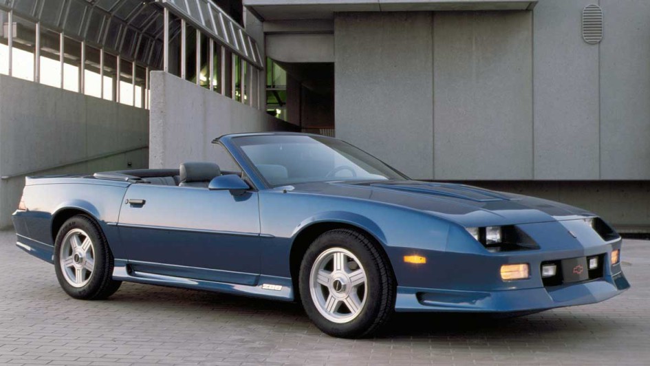 von 20: Chevrolet Camaro Generationentreffen. Vorne Generation 4 als Z28 Modelljahr 1993, daneben Generation 3 als Z28 Modelljahr 1982, daneben Generation 1 als SS Modelljahr 1969, daneben Generation 1 als SS Modelljahr 1967.