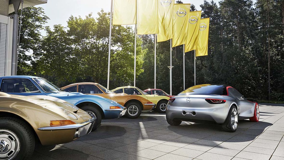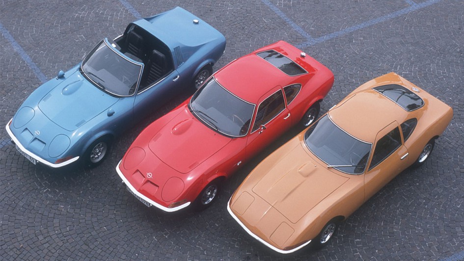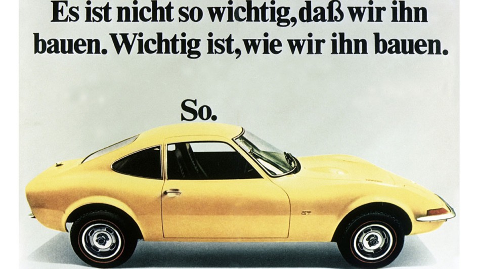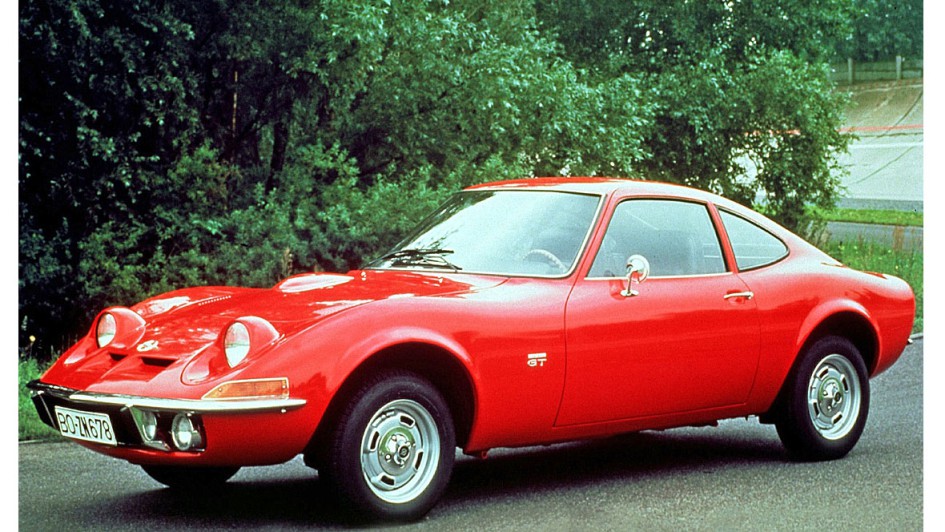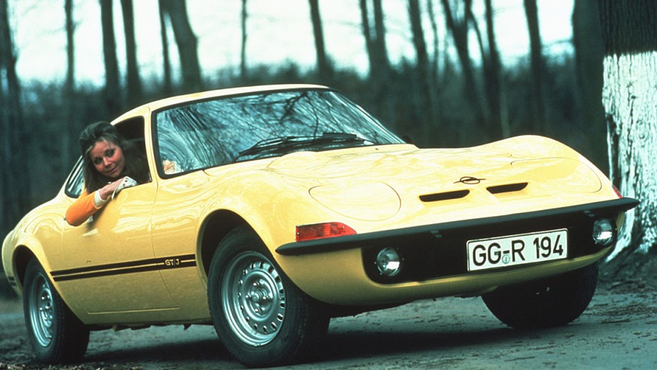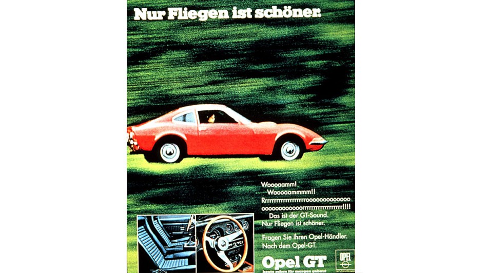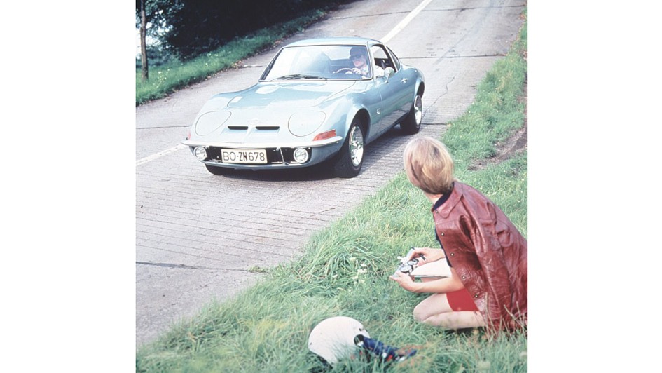 von 9: Opel mit dem aufregenden Klappscheinwerfer-Keil GT zu einem beispiellosen Image-Höhenflug, hier 1968 bei der Pressevorstellung am Hockenheimring.