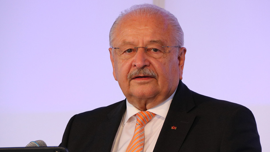von 11: Der gerade wiedergewählte Präsident Jürgen Karpinski erhielt die Stadtplakette in Silber aus der Hand des Oberbürgermeisters von Wiesbaden.