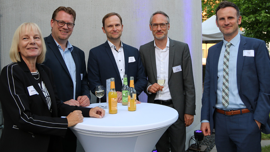 von 11: Fünf Geschäftsführer (v.li.): Antje Woltermann (ZDK), Carsten Beuß (LV Baden-Württemberg), Marcus Weller (Mazda HV), Jens Bleutge (LV Rheinland-Pfalz) und Marc Voss (Subaru HV und Präsident Jaguar Land Rover Händlerverband)