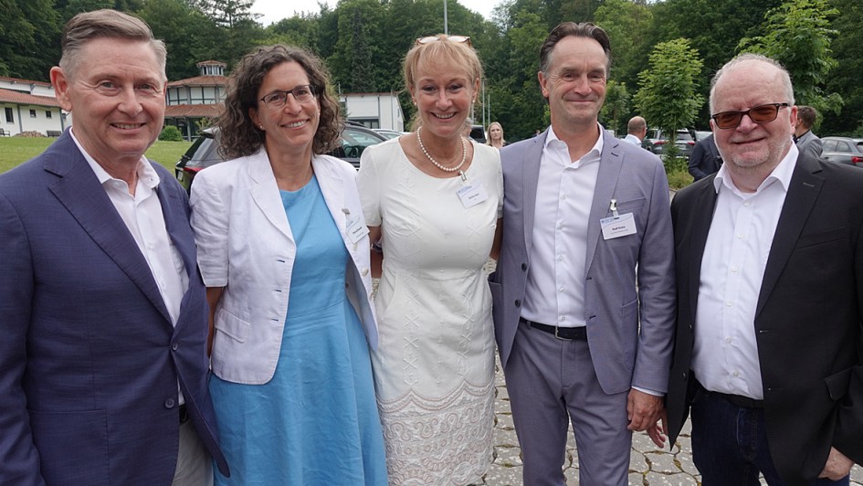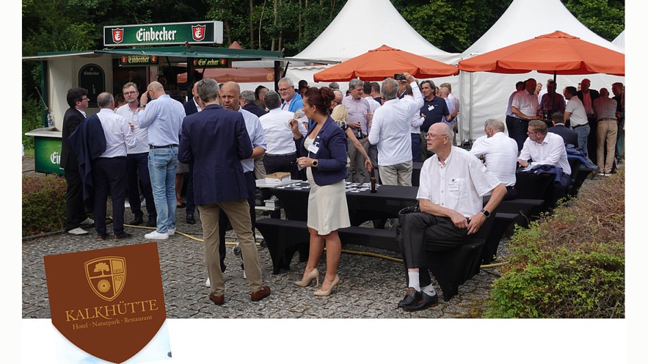 von 17: Der BFC-Campus zu Northeim gehört mit Sicherheit zu den optischen Highlights der Region. Einmalig schön am Waldrand gelegen. Helmut Peter muss mit welchem Wettergott auch immer eine Spezialvereinbarung haben. Lädt er ein, stimmt das Wetter. Und so wirken nicht nur die Spitztürme des Event-Zeltes in der Natur, sondern auch die kulinarische Atmosphäre, auf die "Bundesfestminister" Helmut Peter besonderen Wert legt. Sein Credo als Mercedes-Benz-Vertreter u.a. in der Lutherstadt Wittenberg: "Man kann Gott nicht allein mit Arbeit dienen, sondern auch mit Feiern und Ruhen!" Das klingt alles so selbstverständlich. Helmut Peter weiß, wen er mit der kulinarischen Inszenierung live mit funktionierender Wirkung beauftragen kann. Im Klartext: Er will als Regisseur die Hand darauf halten, falls da irgendetwas sei, das nicht live den gesetzten Ansprüchen genügt. Hier wirkte vorbildhaft das Team "Knauf-Kalkhütte". Knauf, eigentlich mehr aus der weltweiten Gipsvermarktung aus Iphofen bekannt.