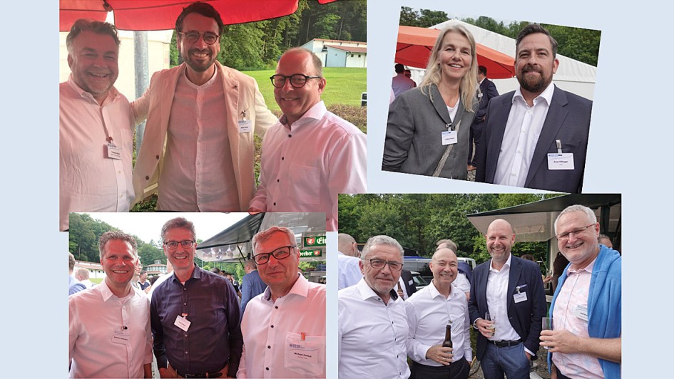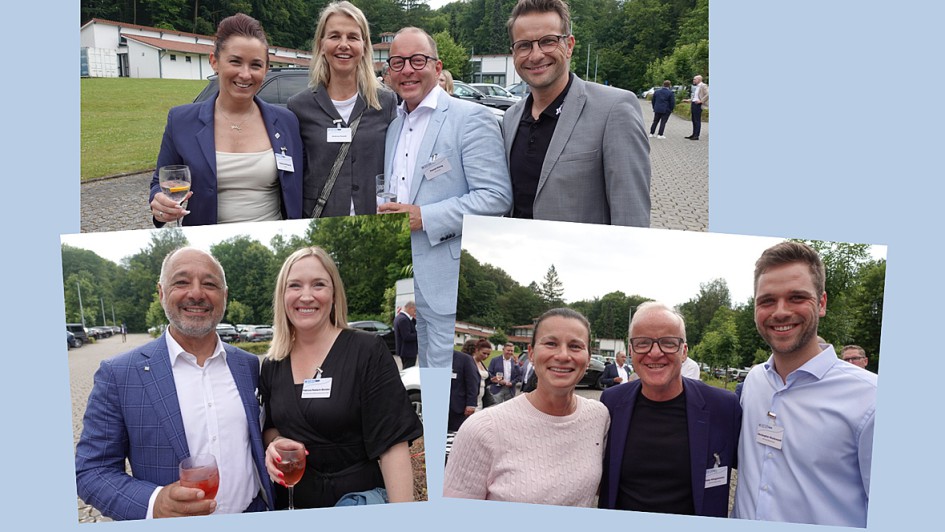 von 17: Oben li.:Daniel König, Real Garant, Julian Wolters, Faaren, und Thomas Bruß, Automotive Group. Bild re.o.: Sven Fillinger, CEO von aubex, Digitalisierungsexperte, vor allem ausgewiesen innerhalb der Mercedes-Organisation mit Andrea Patzelt (DOAK). Unten li. Michael Zimbal, Geschäftsführer im Autohaus Hermann. Er ist der Statthalter vor Ort von Wolfang Hermann, dem Gründer der BFC-Northeim mit Maik Künast und Sebastian Kindermann. Eine starke TÜV-Vertretung mit Kurt Deppert, Vertrieb TÜV SÜD Auto Service (li), Jürgen Papadopulos, Architekt, Axel Bischopink und Ralf Breisch, Leiter Vertrieb Marketing TÜV SÜD.
