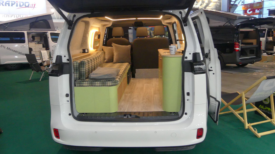 von 4: Pinecamper, ein kleiner Hersteller und Spezialist für Mini-Camper verwandelt den E-Bulli in ein hippes Fahrzeug für das boomende "Vanlife".