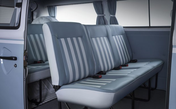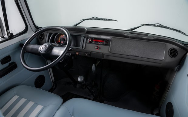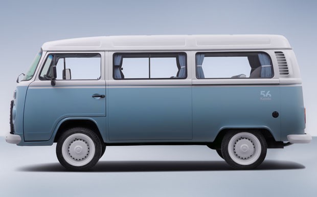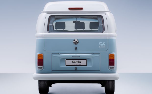 von 9: Mit Weißwand-Reifen, eleganten Fenster-Gardinen und in hellblauer und weißer Farbe - so laufen die weltweit letzten Modelle des Transporter-Mythos im VW-Werk Anchieta in São Bernardo do Campo in Brasilien vom Band.