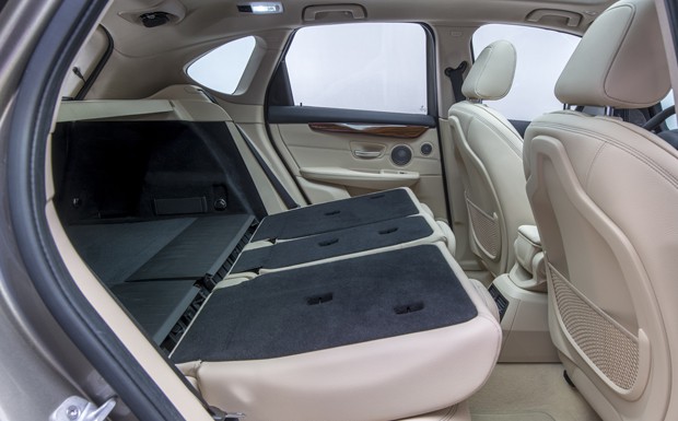von 14: Die zweigeteilte Rückbank lässt sich nicht nur einfach umlegen, sondern auch um bis zu 13 Zentimeter verschieben. Selbst die Beifahrersitzlehne ist nun in einem BMW-Modell umklappbar.