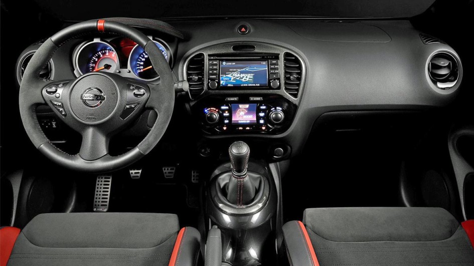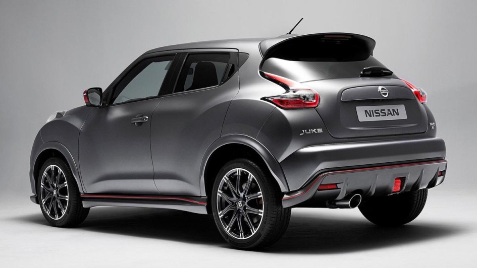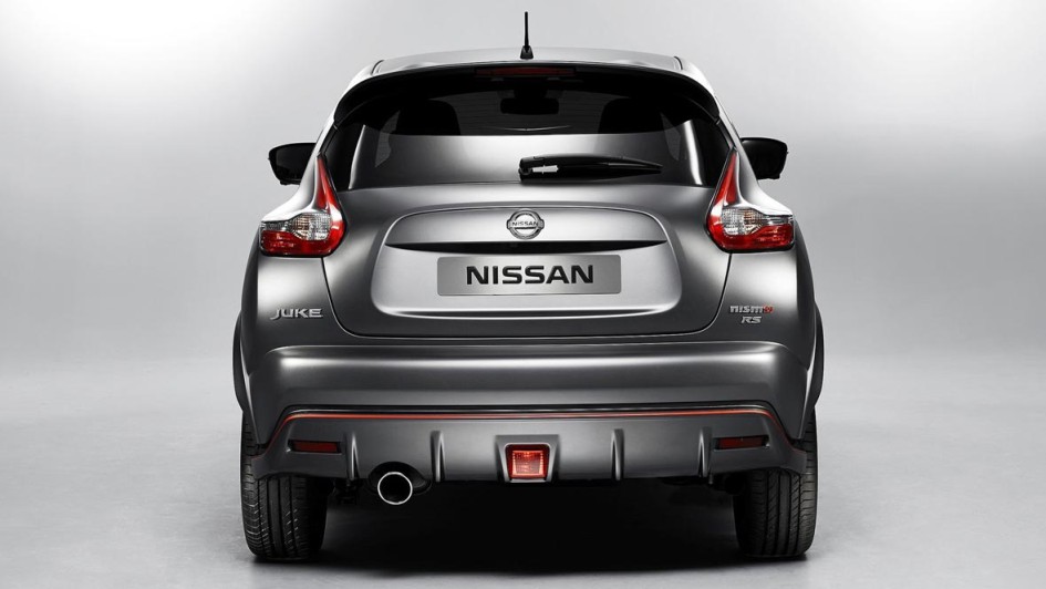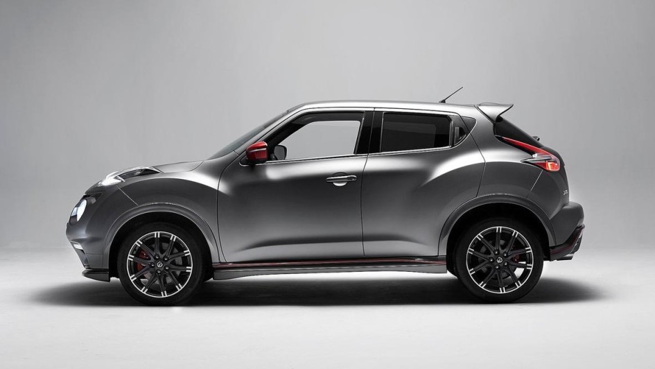 von 8: Davon abgesehen ist der Nissan Juke Nismo RS optisch an den schon vom Juke Nismo bekannten roten Außenspiegelklappen, einem roten Streifen, der sich im unteren Bereich fast um das ganze Auto zieht, sowie LED-Tagfahrleuchten im unteren Kühlergrill und auffälligen 18-Zoll-Leichtmetallfelgen erkennbar.