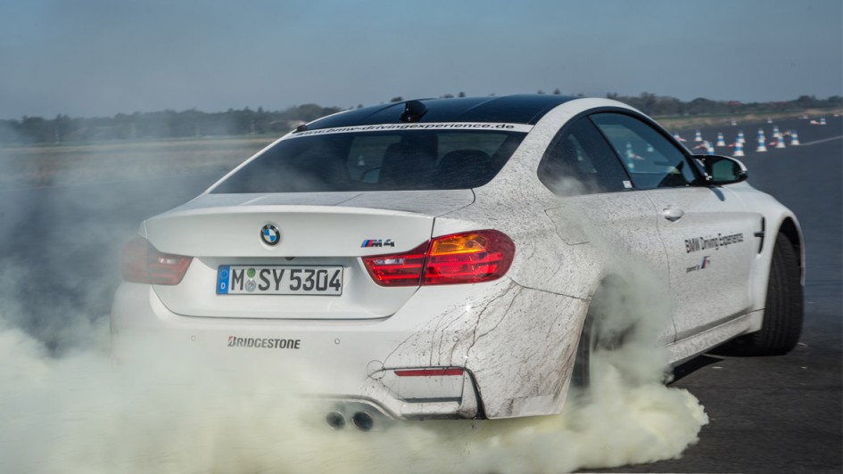 von 6: Die 550 Newtonmeter Drehmoment des M4 sind für diese Übung viel zu viel. Viel mehr als Tempo 30 braucht man nicht, dann reicht ein kurzer Gasstoß, damit das Heck nach außen drängt.