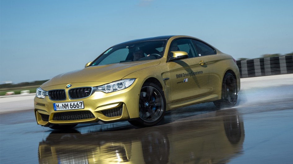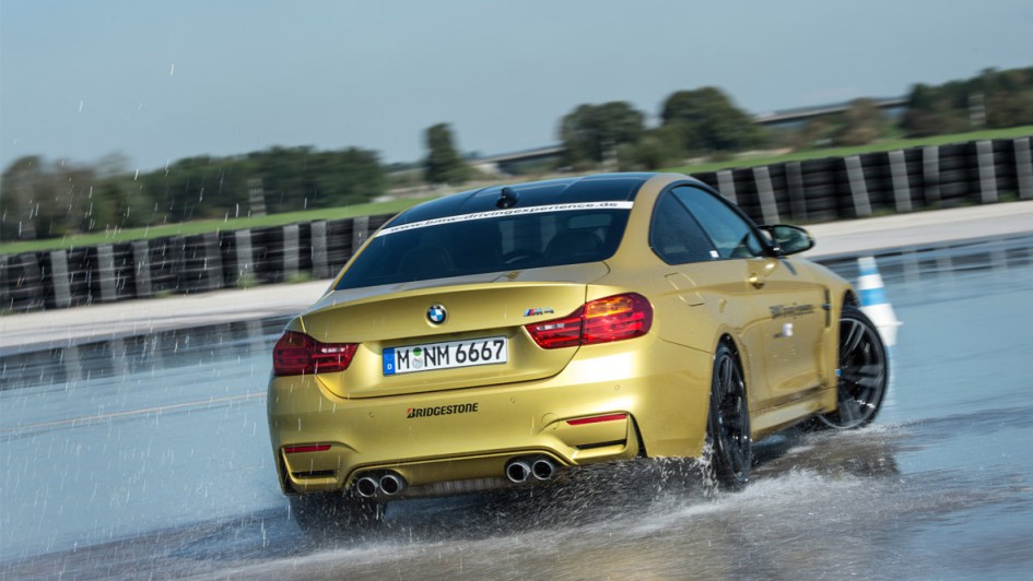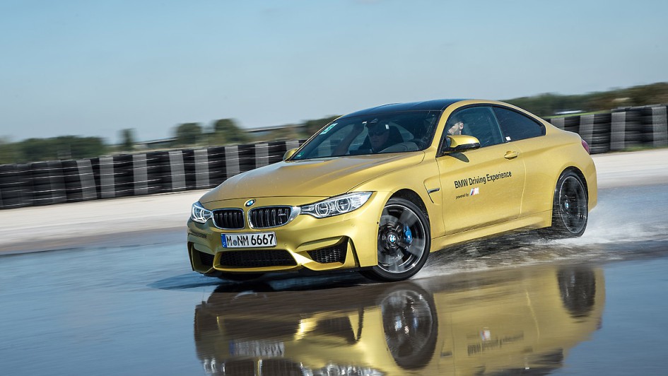 von 6: Auf der Nasshandling-Fläche quietscht es zwar nicht und es gibt auch keinen Gummirauch. Doch dafür lässt sich der 432 PS starke M4 dort am leichtesten querstellen.