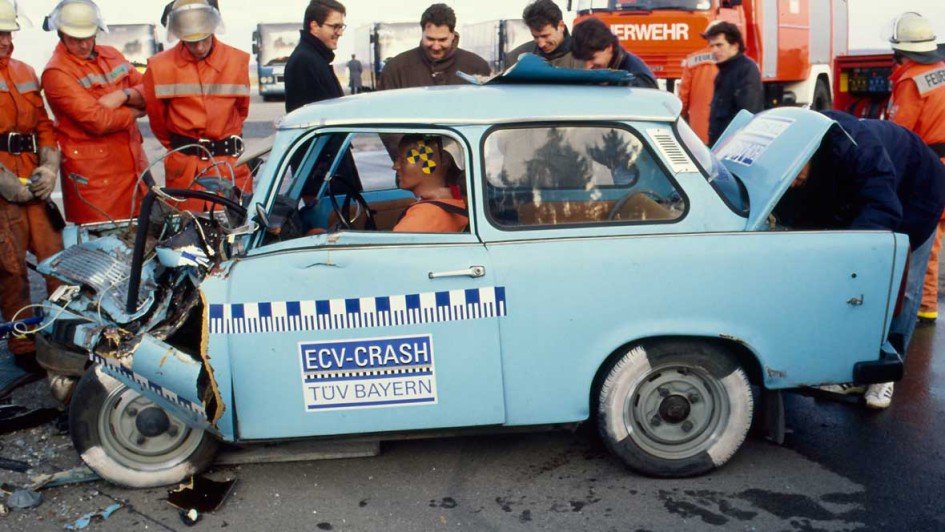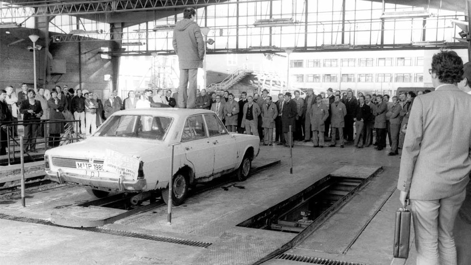von 19: Wir sind der TÜV! Direkt nach der Wende engagiert sich TÜV Süd für die Verkehrssicherheit in den neuen Bundesländern und unterstützt die DDR-Sachverständigen bei der Einführung der Hauptuntersuchung a la BRD.