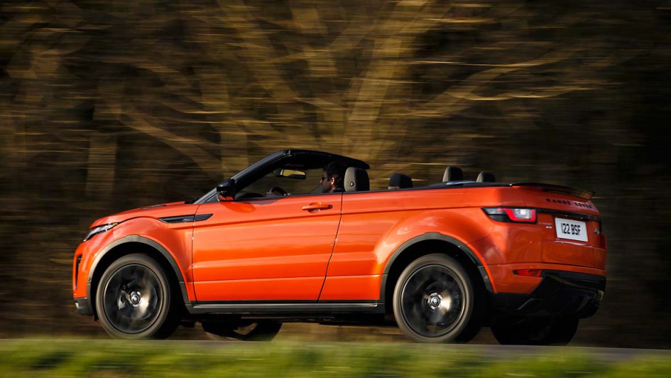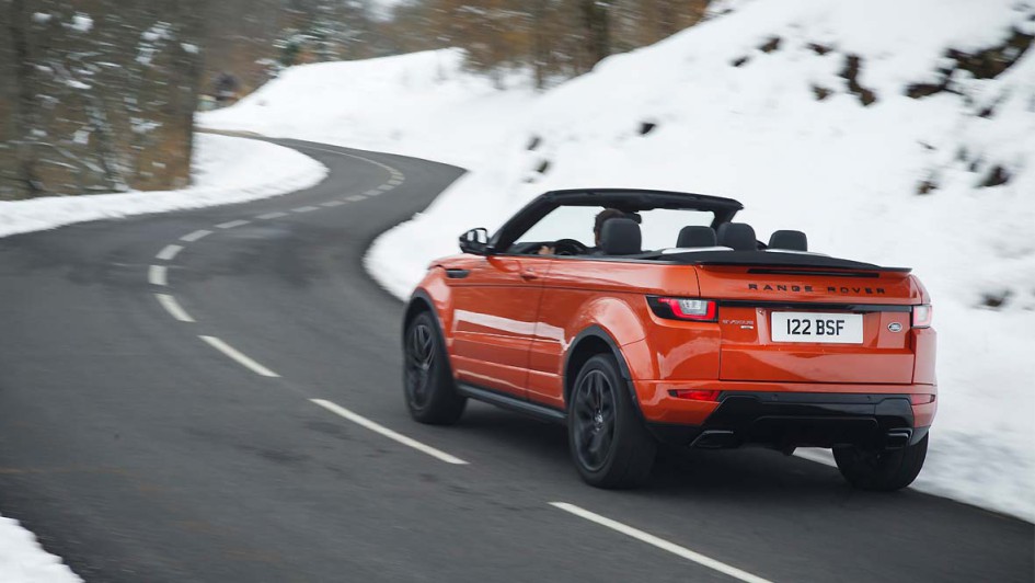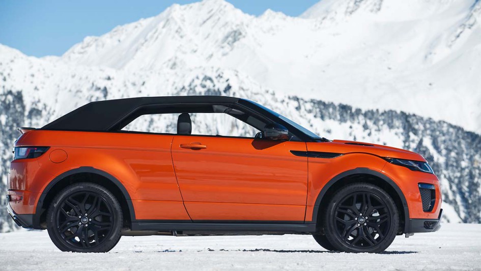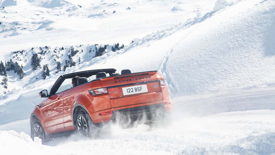 von 8: Dass es auch den offenen Evoque nur mit Allradantrieb gibt, versteht sich von selbst; zum Spritsparen treiben den Range Rover unter Normalbedingungen aber nur die Vorderräder an.