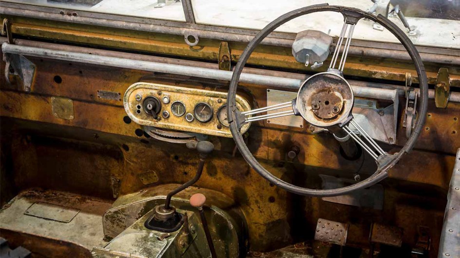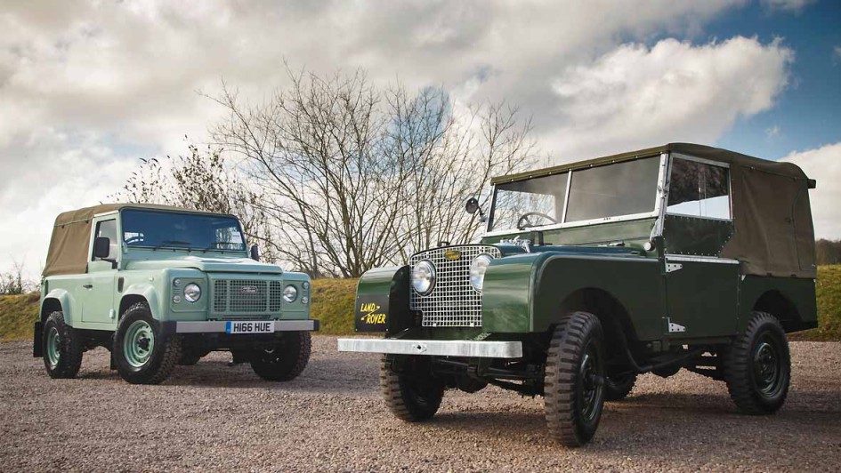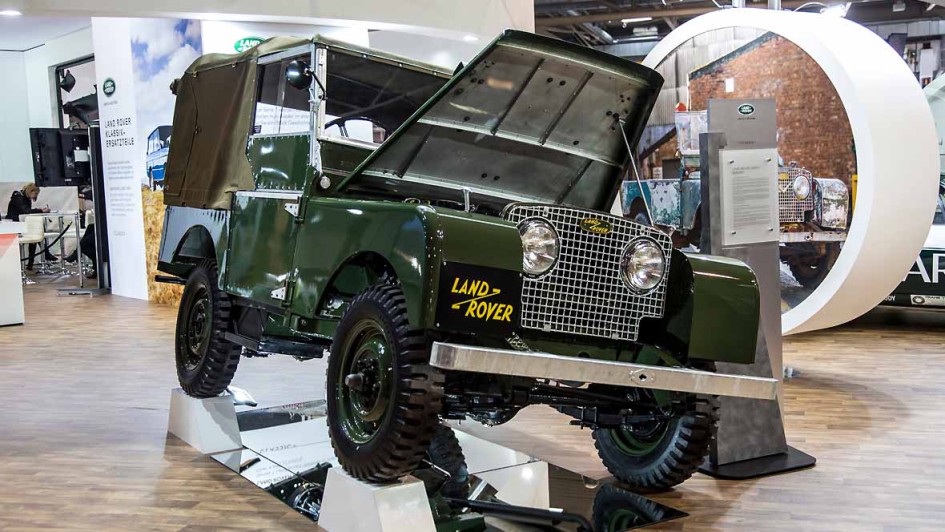 von 5: Zwecks Demonstration hat Land Rover ein paar frühe Kraxler mit auf den Messestand gebracht – sowohl in baufälligem als auch neuwertigem Zustand nach der Restauration.
