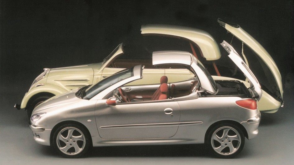 von 19: Ein großer Erfolg für Peugeot war der 206 CC als Klappdach-Cabriolet. Im Hintergrund der 402 Eclipse, mit dem Peugeot im Vorkriegsdeutschland für Furore sorgte.