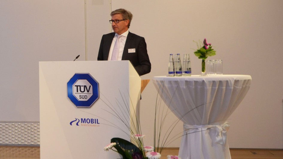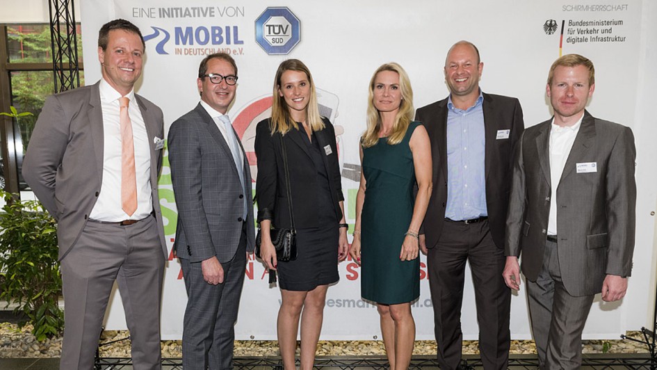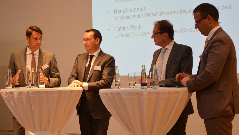 von 5: v.l.: An der abschließenden Podiumsdiskussion nahmen Patrick Fruth, Leiter der Division Auto Service TÜV Süd, Hans Hammer, Vorsitzender des Wirtschaftsbeirates Bayern, Dobrindt und Haberland teil.
