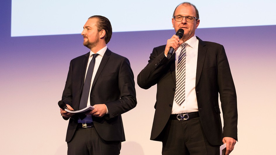 von 17: Die Gastgeber Ralph M. Meunzel, Chefredakteur AUTOHAUS (r.), und Patrick Neumann, stellvertretender Chefredakteur, überreichten die Auszeihnung für das beste Image in zehn Branchenkategorien.