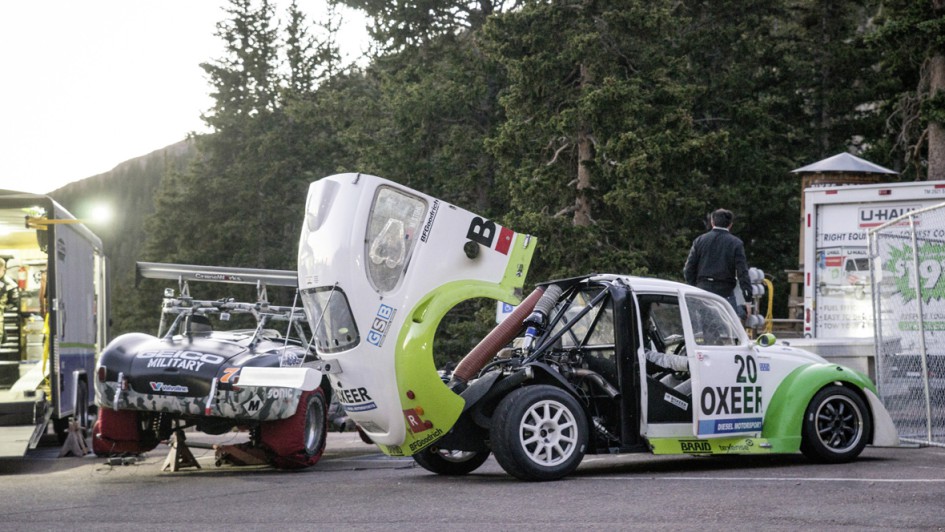 von 9: Ebenfalls 1987 ging der VW Twin-Golf Pikes Peak an den Start. Zwei 1,8 Liter große Vierzylinder vorn und hinten sorgten mit insgesamt über 600 PS dafür, dass dem Power-Golf die Luft nicht ausging.