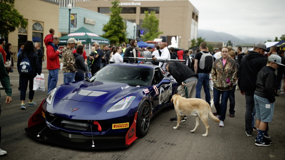 von 9: Vor dem Rennen findet ein großes Fest statt. Die Corvette im Bild mit überlangem Spoilerschwert würde so wohl keine Straßenzulassung erhalten.