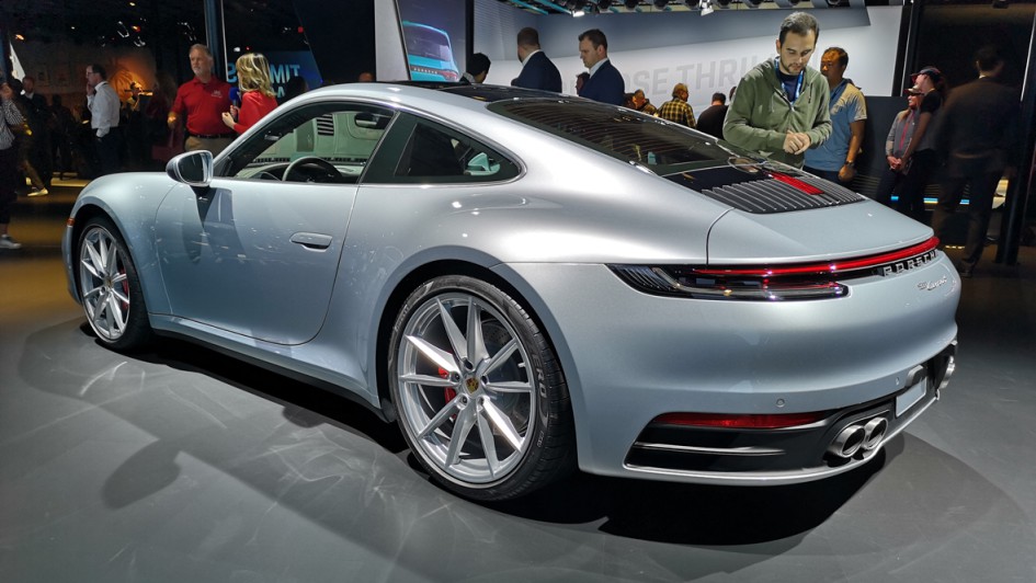 von 18: Porsche zeigt den neuen 911er, Code 992. Die Optik wurde leicht aufgefrischt. Wohl größtes Unterscheidungsmerkmal außen ist das durchgehende LED-Leuchtenband am Heck. Interessant: Den neuen 911er wird es nur noch mit der breiten Karosserie geben - sie war früher den Allradversionen vorbehalten.