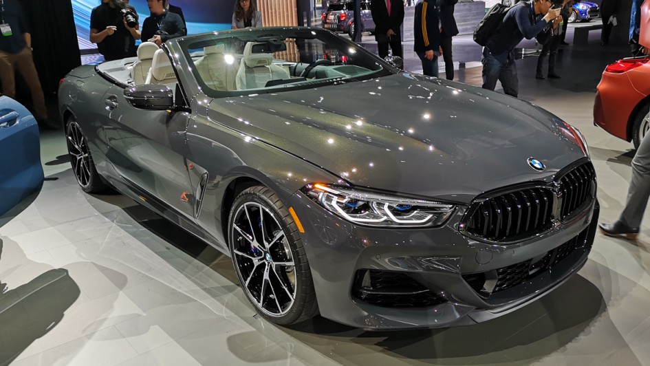 von 18: Die Münchner haben außerdem das neue 8er Cabrio mit nach Los Angeles gebracht. Los geht es im März 2019 mit den beiden bekannten Motorisierungen M850i (390 kW / 530 PS, V8-Benziner) und 840d (235 kW / 320 PS, Sechszylinder-Diesel).