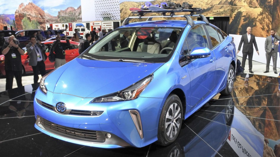 von 18: Toyota stellt seine Hybrid-Ikone Prius in einer leicht überarbeiteten Version vor. Zu den optischen Neuerungen gehören verschlankte Scheinwerfer mit doppelten LED-Einheiten (Bi-Beam-LED).