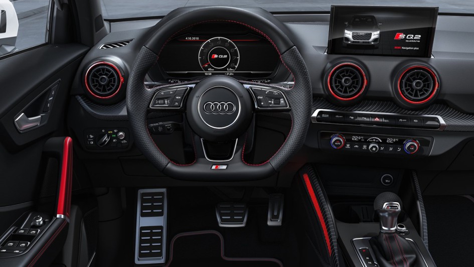 von 6: Dazu kommen Stoff-Ledersitze, Alu-Akzente im Cockpit und Edelstahl-Pedale sowie optional das aus anderen Modellen bekannte "Virtual Cockpit" im Instrumententräger.
