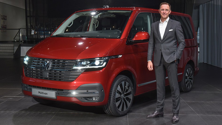 von 13: Weltpremiere des digitalisierten Multivan: Dr. Thomas Sedran, Vorsitzender des Markenvorstands Volkswagen Nutzfahrzeuge, bei der Präsentation des T6.1, der "Ikone neuester Stand".
