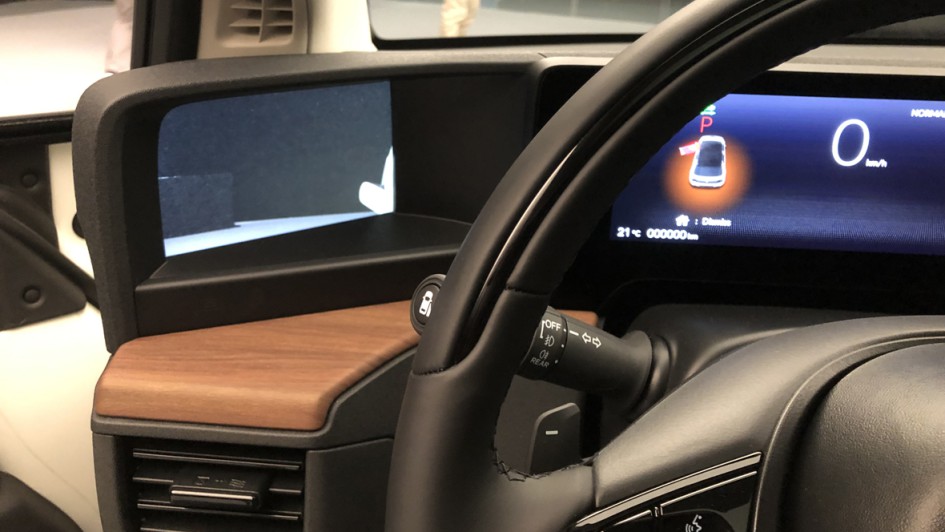 von 9: Der Elektro-Kleinwagen kommt ohne klassische Außenspiegel aus. Zum Einsatz kommen Kameras. Deren Bilder werden über Farbmonitore ins Innere übertragen.