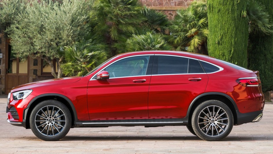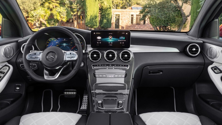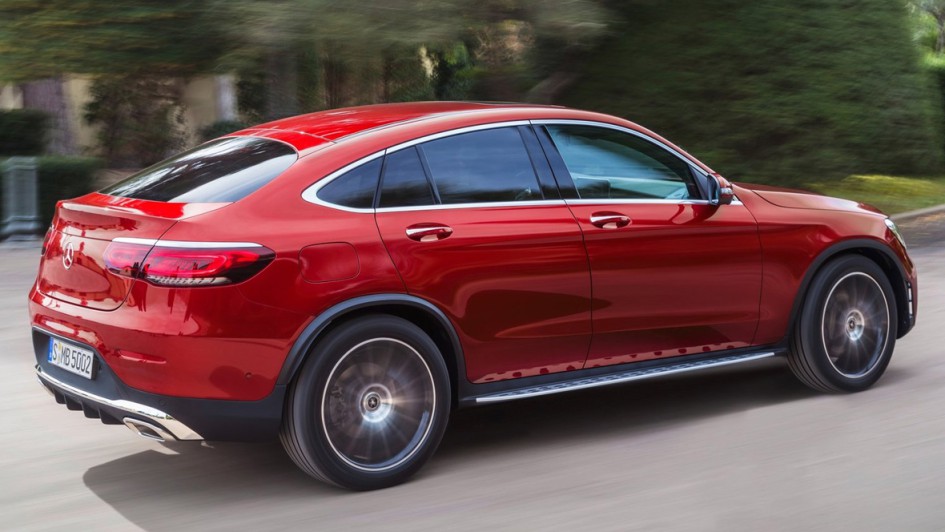 von 9: Nachdem Mercedes auf dem Autosalon 2019 in Genf den überarbeiteten GLC vorgestellt hat, zeigen die Stuttgarter auf der New Yorker Motorshow das aufgefrischte Coupé des Mittelklasse-SUV.