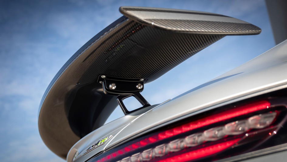 von 10: Im Vergleich zum gleichstarken "normalen" AMG GT R konnten zwar nicht viele Kilogramm abgespeckt werden, allerdings sorgen zahlreiche serienmäßige Details für mehr Rennstreckentauglichkeit. Einstellbarer Drehstab-Querstabilisator aus Karbon an der Vorderachse und ein neues, vielfach verstellbares Gewindefahrwerk zählen dazu.