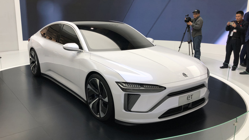 von 14: Den Namen "Nio" hat man auch in Deutschland schon mal gehört. Der noch junge, chinesische E-Autobauer präsentiert in Shanghai das kommende Modell ET - die Ähnlichkeit mit dem Tesla-Design ist nicht zu übersehen.
