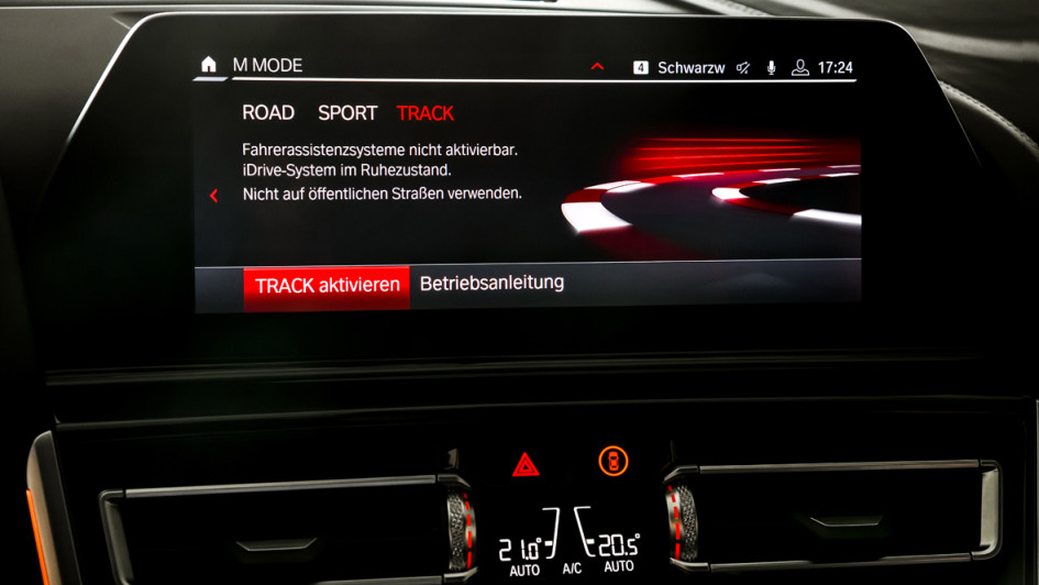 von 9: Ebenfalls neu ist der sogenannte M-Mode. Über eine auf der Mittelkonsole befindlichen Taste lassen sich Fahrerassistenzsysteme an die Einstellung "Road" (Straße), "Sport" sowie bei den Competition-Modellen auch "Track" (Rennstrecke) beeinflussen.
