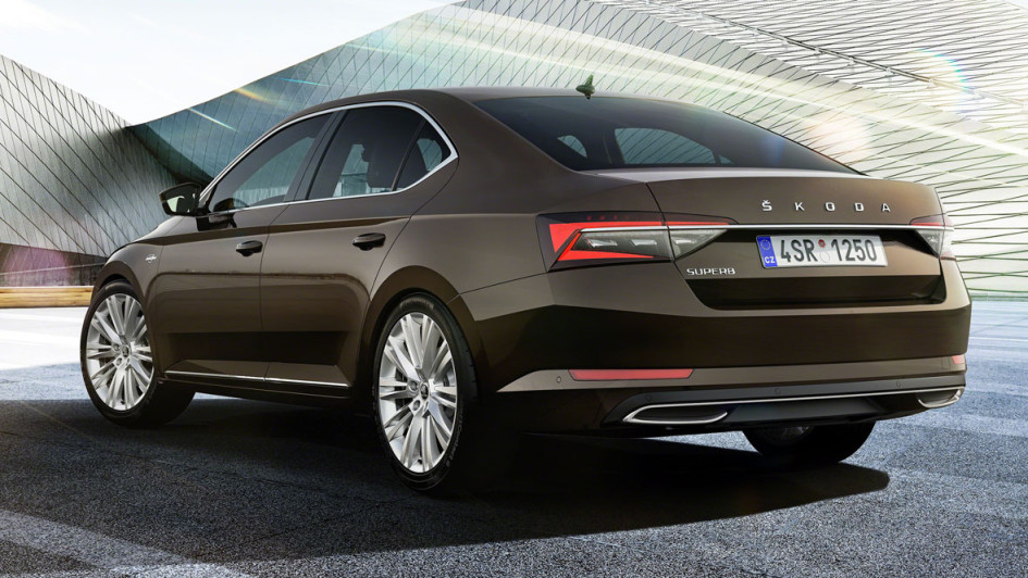 von 9: Am Heck des gelifteten Superb strahlen Leuchtdioden durch die Nacht, statt wie andere Hersteller auf ein durchgängiges Lichtband zu setzen, verbindet Skoda die Rücklichter aber mit einer Chromleiste.