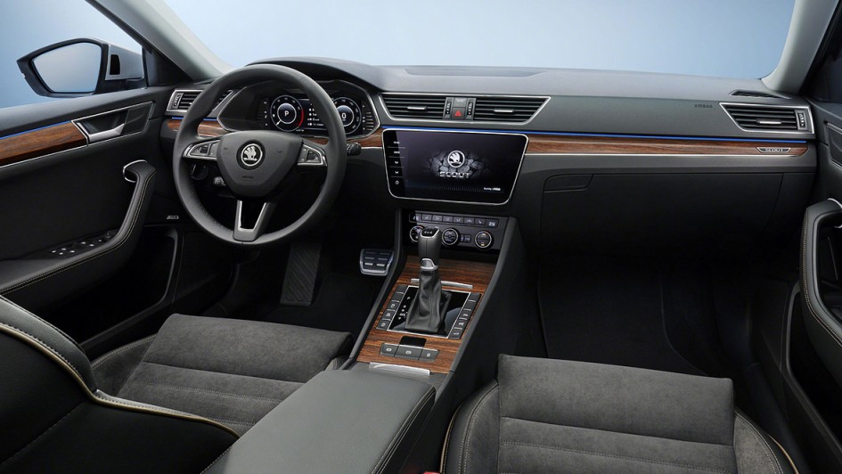 von 9: Der Superb Scout bietet 15 Millimeter mehr Bodenfreiheit, Aluminium-Unterfahrschutz und robuste Plastik-Planken. Der obligatorische Allradantrieb wird um einen speziellen Offroad-Fahrmodus erweitert.