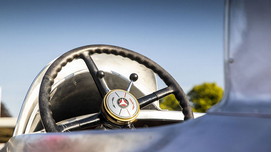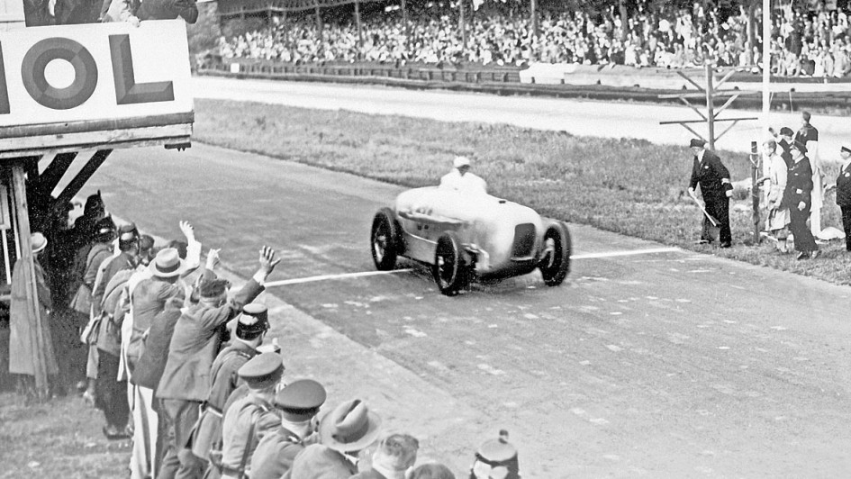 von 5: Am 22. Mai 1932 gewann Manfred von Brauchitsch das Avus-Rennen in Berlin auf Mercedes-Benz SSKL mit Stromlinienkarosserie und stellt dabei mit einer Durchschnittsgeschwindigkeit von 194,4 km/h über eine Distanz von 200 Kilometern einen Klassenweltrekord auf.