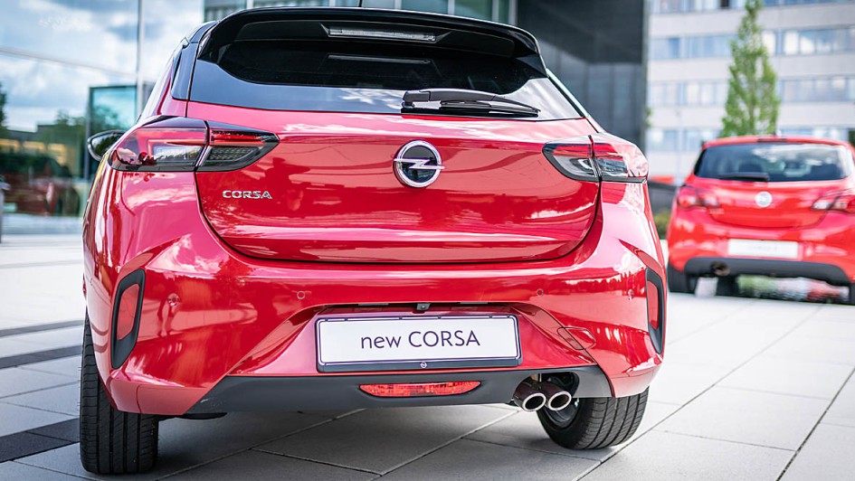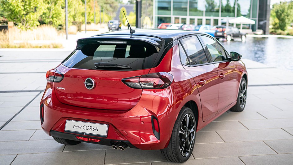 von 10: Der neu Opel Corsa startet Ende 2019. Hier zu sehen die sportliche Variante "GS Line" mit schwarz lackierten Außenspiegeln, Dachspoiler, Stoßfängern in Sport-Optik, 16-Zoll-Leichtmetallrädern und verchromten Doppelrohr-Auspuffenden.