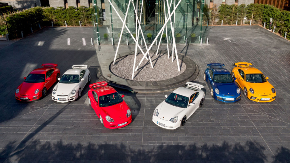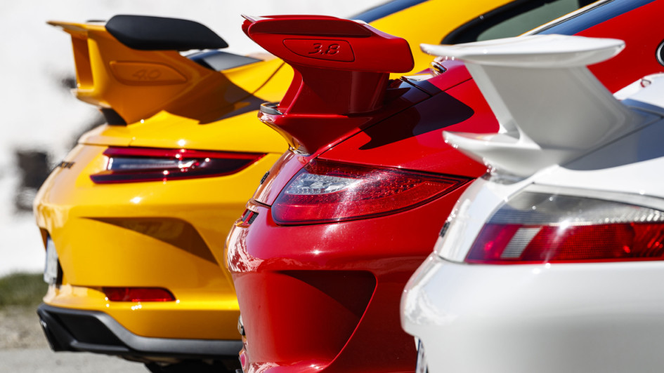 von 12: Die Baureihe 991 bildete 2013 die Basis für die fünfte Generation des GT3. Das Gewicht konnte weiter reduziert werden. 470 PS sorgten für eine Beschleunigung von 0 auf 100 km/h in 3,5 Sekunden. Höchstgeschwindigkeit: 315 km/h.