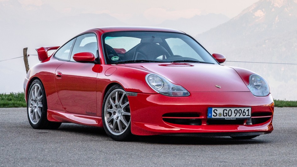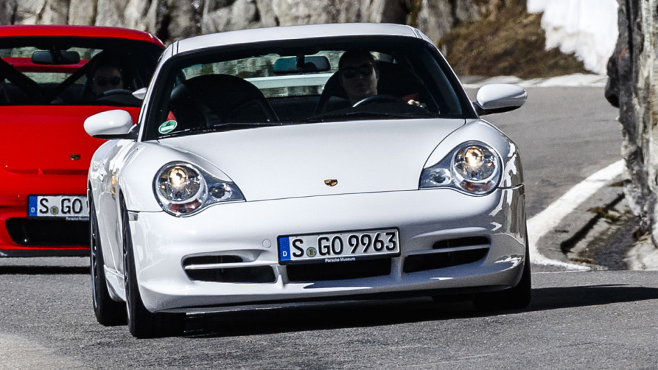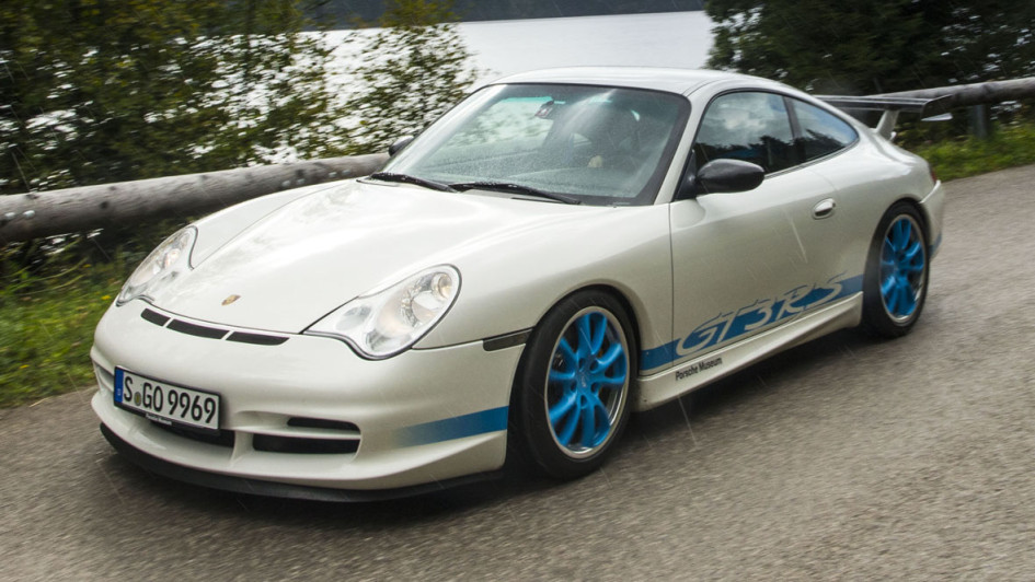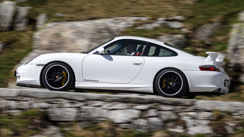 von 12: Als Basis für den Ur-GT3 diente die Baureihe 996, mit der die Zuffenhausener erstmals auf Wasser- statt Luftkühlung setzten. Angetrieben wurde der erste GT3 von einem freisaugenden 3,6-Liter-Sechszylinder-Boxermotor mit 360 PS.