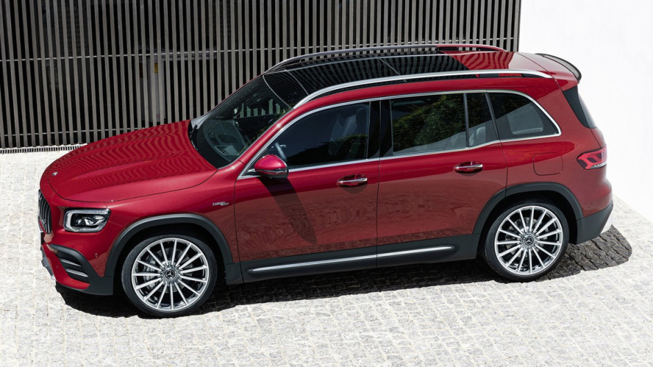 von 10: Wie schon bei CLA 35 und A35 kommt auch im GLB ein Zweiliter-Vierzylinderbenziner zum Einsatz, der 225 kW/306 PS und 400 Newtonmeter Drehmoment zur Verfügung stellt.