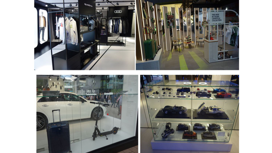 von 46: Die meisten Automobilhersteller bringen auch ihre Zubehör-Shop-Auslagen mit, von Bekleidung bis zu Fahrzeugmodell-Miniaturen. Mercedes stellte den ersten E-Scooter vor, lieferbar Februar 2020, Reichweite 15 Kilometer. Ohne Preisangabe.