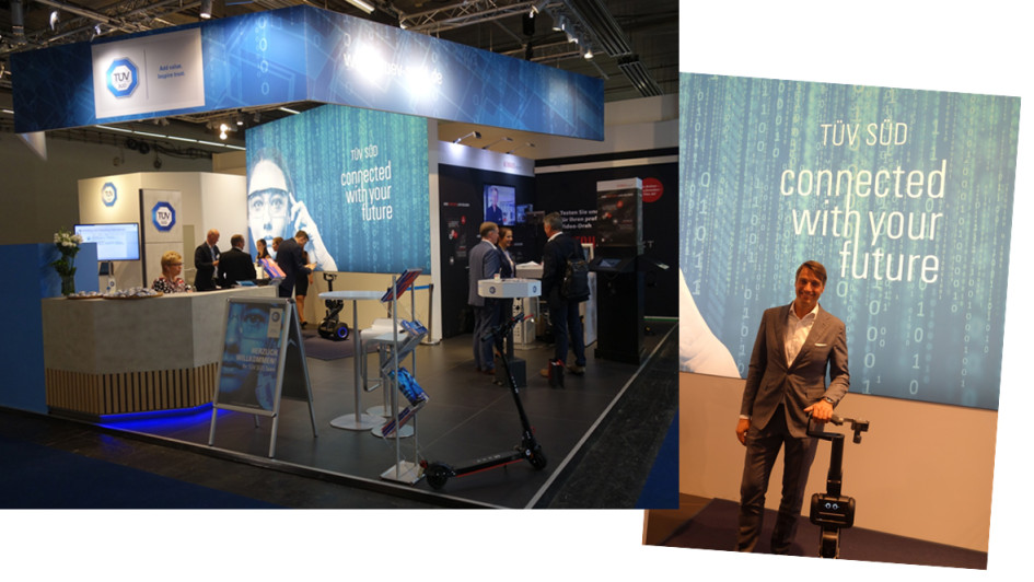 von 46: Patrick Fruth, CEO der Division Mobility bei TÜV Süd, erläuterte auf dem Stand des Prüfkonzerns die internationalen Aktivitäten für einheitliche Standards bei der Homologation und Zulassung hochautomatisierter Fahrzeuge. Ebenso die Besonderheiten bei der Prüfung von Antriebsbatterien. Der TÜV Süd gehört zu den führenden Zertifizierern von Ladestationen für Elektrofahrzeuge.