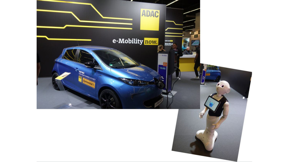von 46: Der ADAC macht auf E-Mobility und lässt einen Roboter ADAC-Dialoge führen. Ansonsten wirbt man um neue Mitglieder. Der ADAC hat inzwischen 22 Millionen davon, ein klares Statement "Pro Auto", für individuelle, nachhaltige Mobilität ist allerdings nicht zu vernehmen. Eine unpolitische Veranstaltung! Sie ducken sich vor ein paar tausend Demonstranten.