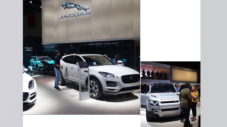 von 46: Jaguar und Land Rover zieht in Frankfurt die große Bühne auf. Bei Land Rover steht der neue Defender im Mittelpunkt, bei Jaguar der vollektrische I-Pace, F-Type sowie XE. Interessenten können mit dem I-Pace auf der Messe Testfahrten machen.