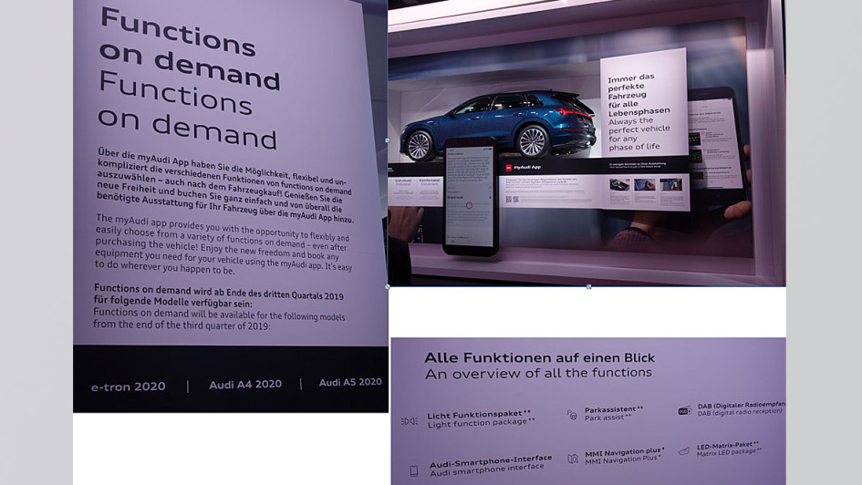 von 46: Wow! Was für ein Stand-Gestaltungswurf. Diese Vielfalt, die Lichteffekte, all die kreativen Motive, die Modell-Spezies: Mit dem AudiAI:Trail quattro wurde der elektrisch angetriebene Offroader präsentiert. Der Geländewagen der Zukunft. Fünf Drohnen mit integrierten Matrix-LED-Elementen sorgen für Fernsicht.